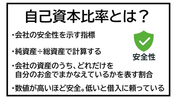 自己資本比率が高ければ高いほど、会社の財務的な安全性は高いと判断されます。