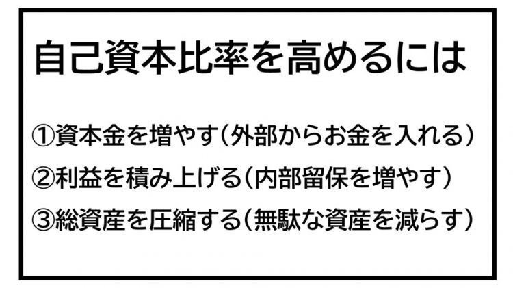 コンパクトな経営に変化することで自己資本比率を高めるという方法です。