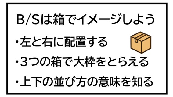 まずは、それぞれの箱の中身を知ることが、貸借対照表を読むうえでの1つ目のポイントになります。
