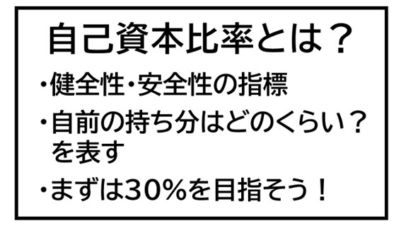 自己資本比率は会社の健全性・安全性を示す数字ですので、この数字が適正水準なのかを確認してください。