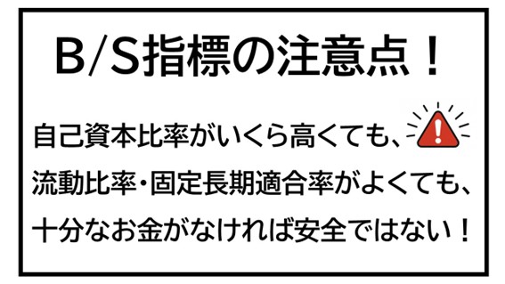 ですから、会社は自己資本比率が高いだけでも、固定長期適合率が低いだけでもダメで、同時に手元現預金をどのくらいもっておくべきかという指標を合わせて常に見ておくことがとても大切だということになります。