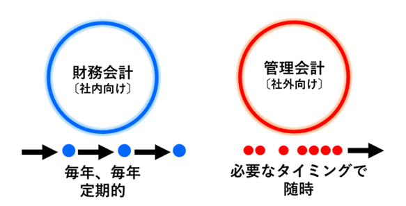 一方、管理会計は作成する頻度、期間は決まっていません。
