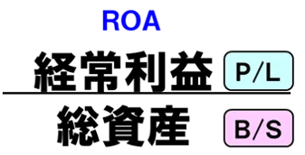 ROAは総資産と経常利益の関係性を見て効率性を表します。
