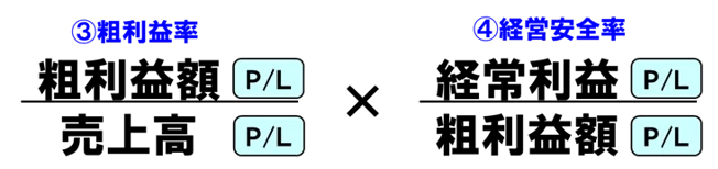 そして、さらに、②の売上高経常利益率は、次の2つの式にもう1段階、分解できます。