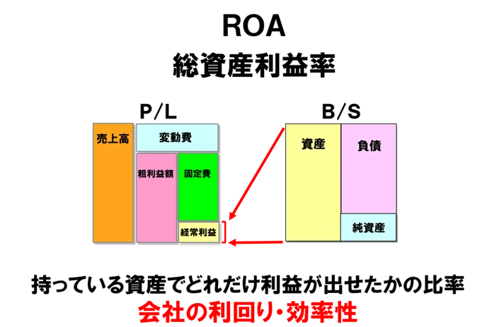 その中でも耳にしたことはあっても、その内容がよくわからない、その数値を良くするためにどうしたらよいかわからないという指標で代表的なものがROAです。