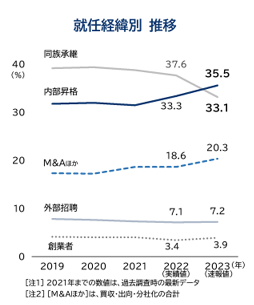 しかし2023年初めて内部昇格が親族内承継を上回りました。
