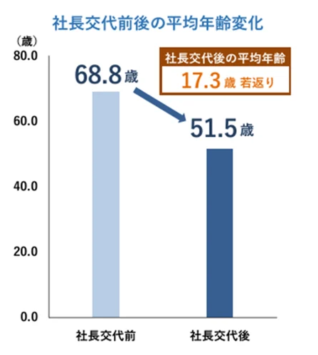 社長を交代しても平均51.5歳と30年前の経営者の平均年齢54歳に肉薄している状況です。