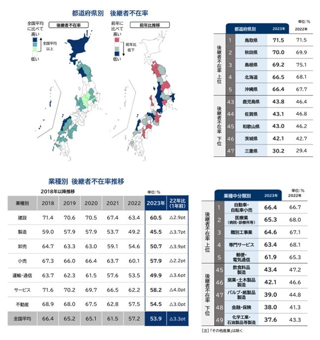 地域別にみると、地方だから後継者の不在率が高いということではなく、その地域が得意としている業種に応じて不在率が影響してきます。