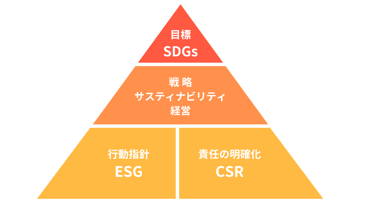 といっても、ESG、SDGs、CSR等同じような概念の言葉があり、それぞれどういう意味なのか?どういう使い分けをすべきなのか?等があいまいになっている方も多いのではないでしょうか?
