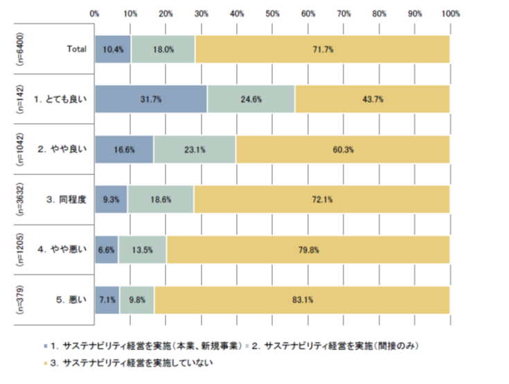 同業他社と比較した「業績(売上高・利益)の水準」とサスティナビリティ経営の実施状況の関係