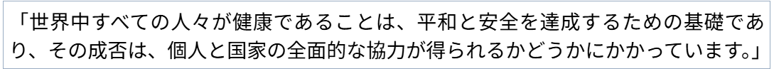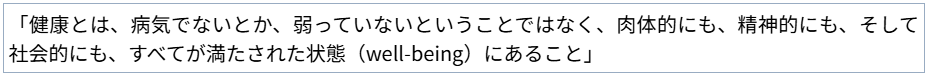 世界保健機関(WHO)の憲章による「健康の定義」において、