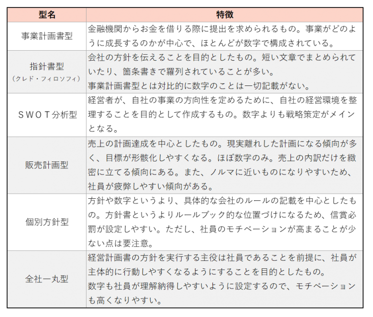 経営計画はいくつかの「型」がある