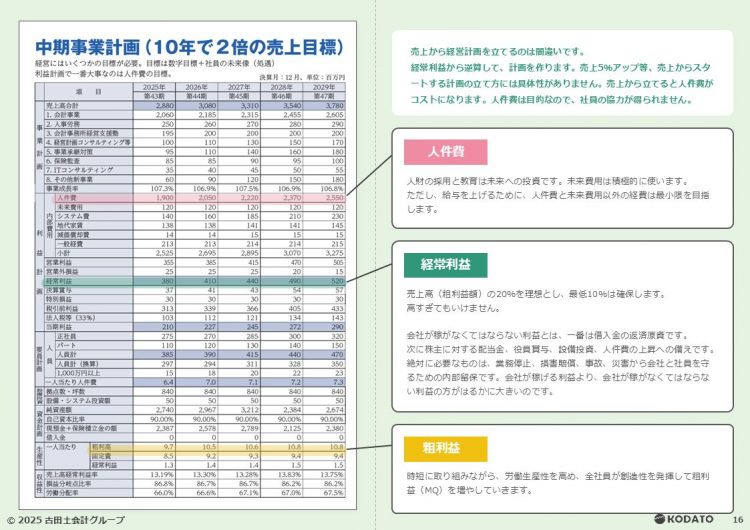 経営計画書を作る過程で、無駄な支出や機会損失に気づくことができます。結果的に、利益が出る高収益体質の会社に変化します。