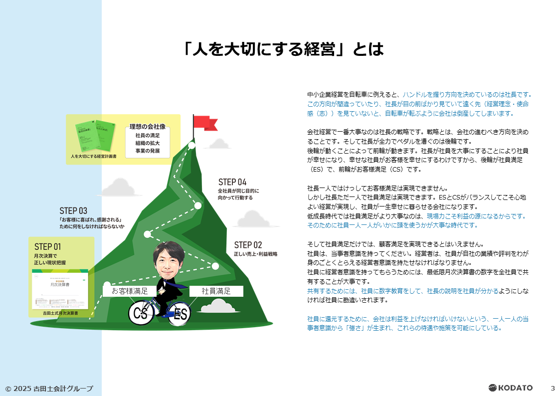 経営計画書に会社の未来を記すことで、会社を取り巻く関係者の人たちも安心します。明るい未来を描ける会社には、「ヒト・モノ・カネ」が集まります。
